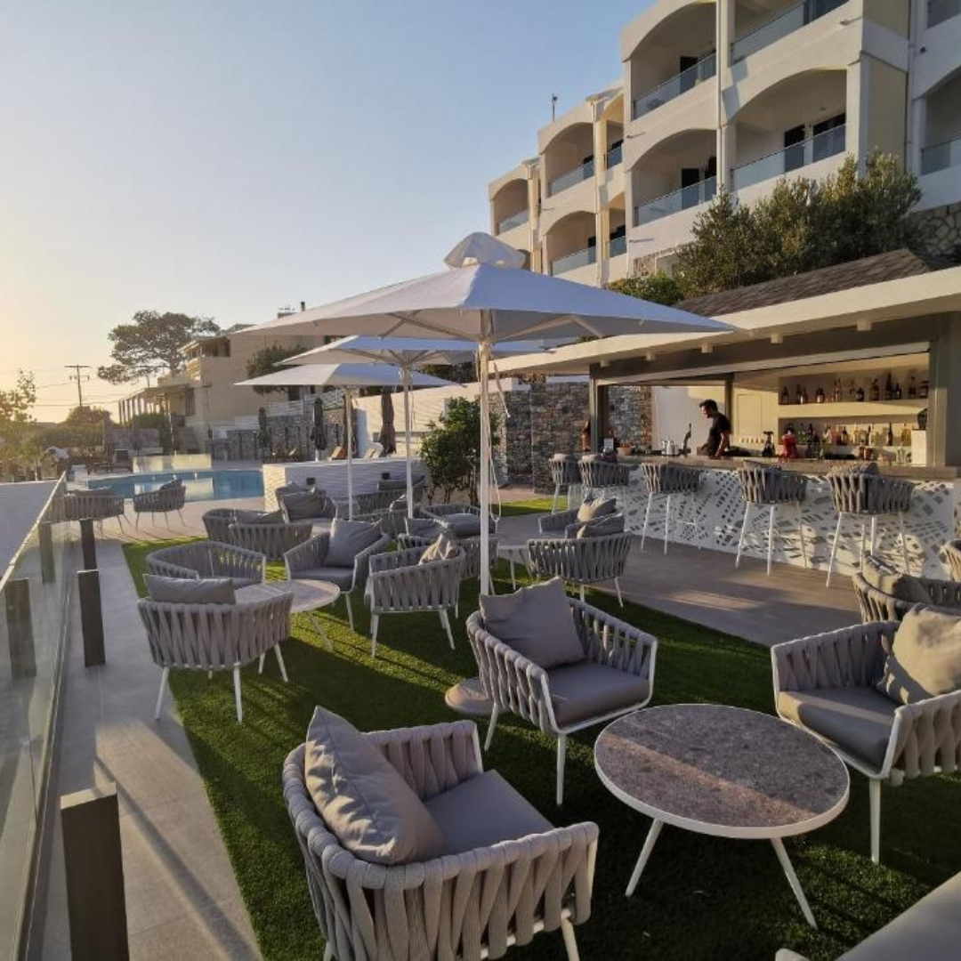There is a spacious reception (safe on request) and sitting room with TV corner that extends onto the terrace, a pool bar, swimming pool with deck chairs and umbrellas (no charge) , playground and laundry room ( charge ) . Continental breakfast (on Request) can be also served at the terrace. Free wifi all around the hotel .