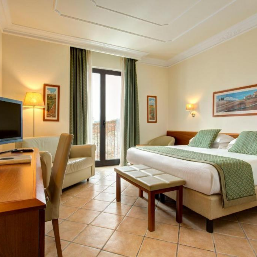 There are 33 double, 5 single rooms and 5 triple rooms. All the rooms have a shower/WC, balcony or terrace, telephone, safe, fridge and A/C .