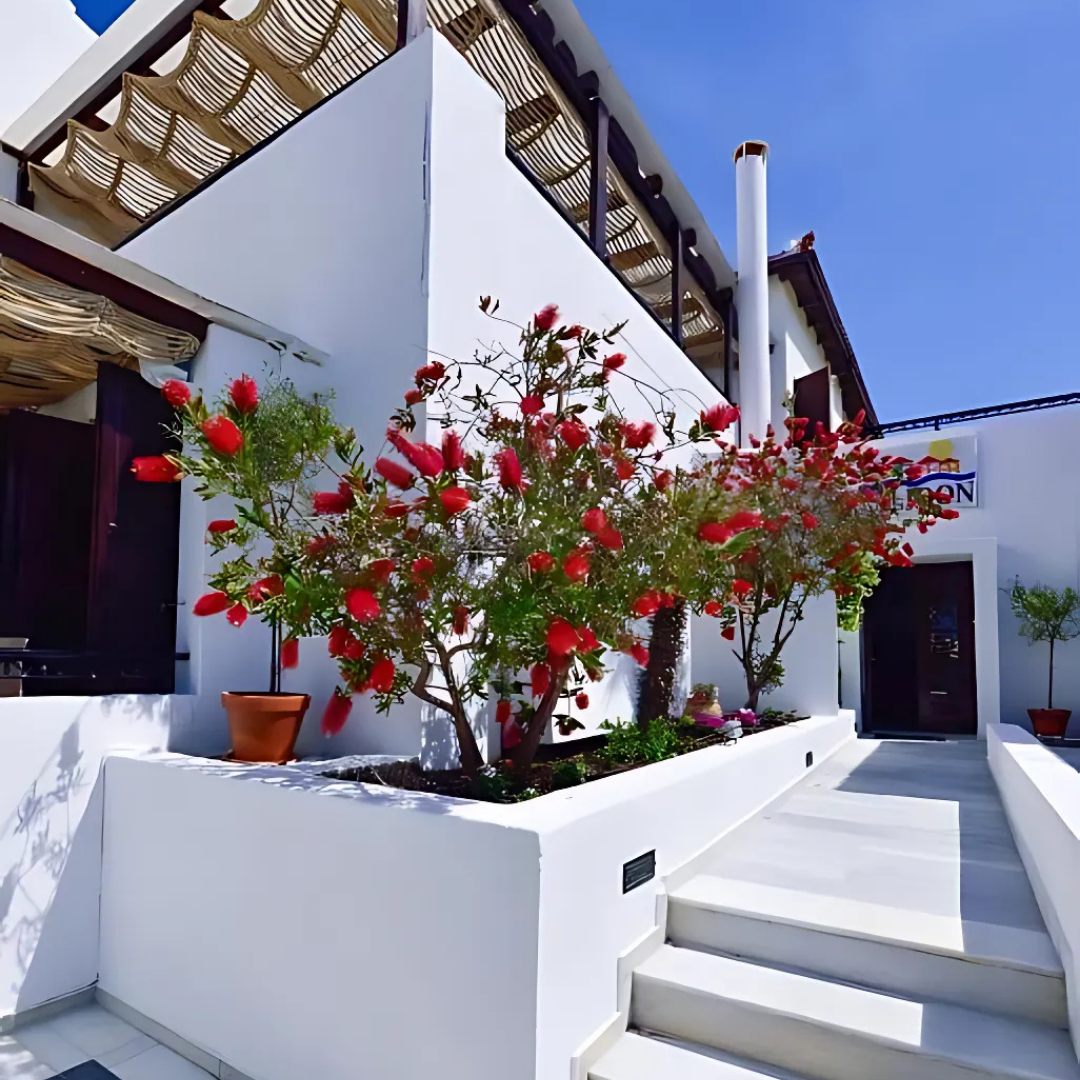 This small, but tastefully decorated hotel is in the centre of Kokkari and just across the road from the shingle beach. Close by are shops, restaurants, banks and supermarkets. The local bus stop is only 100m away.
