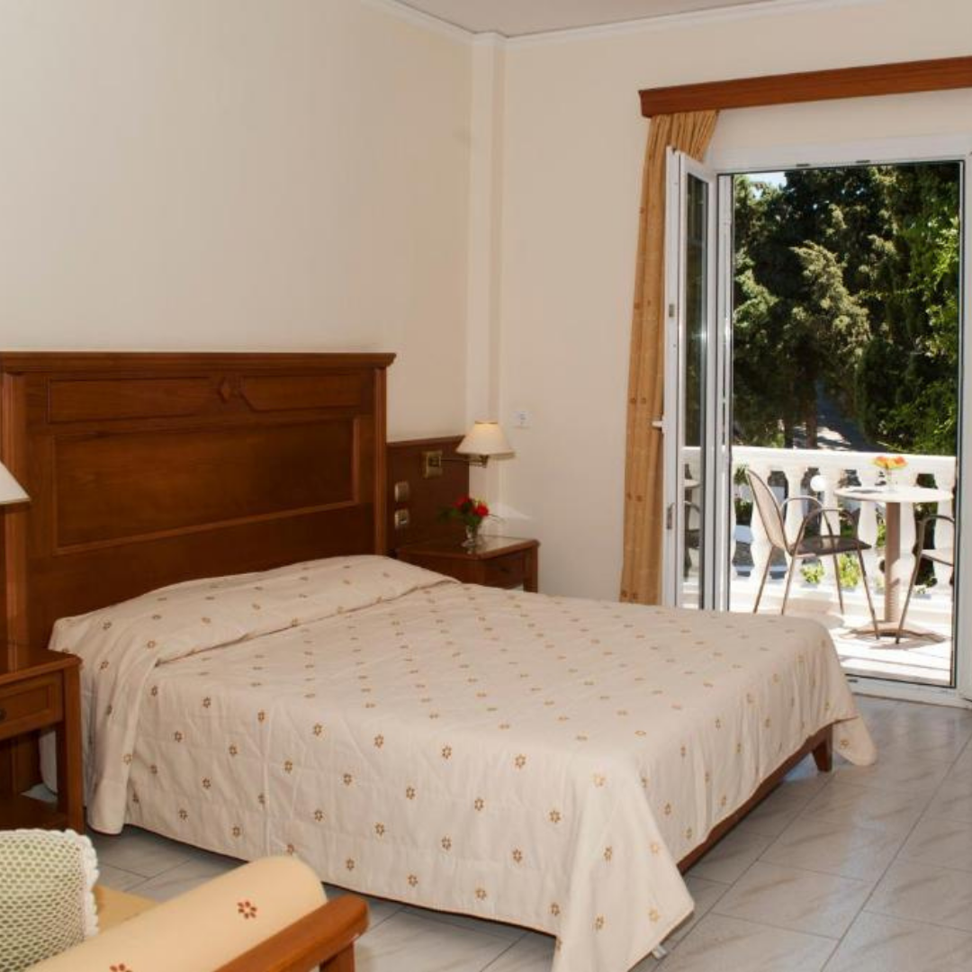 The hotel’s 62 rooms are double or twin, triple and some rooms have a sofa-bed to sleep one child or adult additionally. All rooms have ensuite bathroom with either a bath or shower. All rooms are equipped with modern comforts and appliances for a relaxing holiday and include , Air-condition ( centrally controlled in the HS) , Satellite TV, Mosquito nets on windows and balconies, Wireless internet, Fridge, Hairdryer, Safety deposit box, Telephone, Music.
