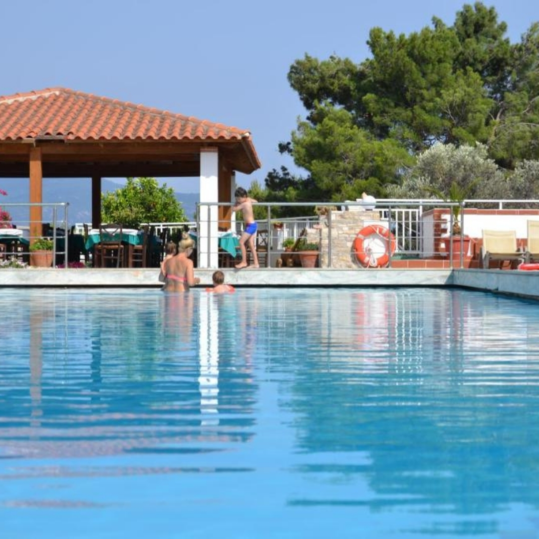 The Hotel offers a nice reception area with bar and terrace. The outside dining room is located next to the charming fresh water swimming pool. In addition, the hotel offers a tennis court and SAT-TV corner.